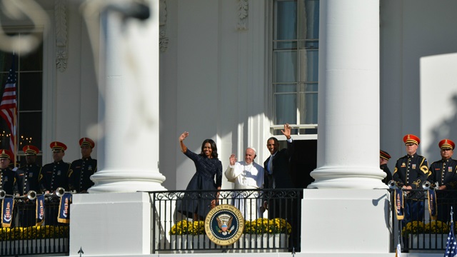 An enthusiastic crowd or 11,000 ticketed guests gathered on the South Lawn of the White House this morning as President Obama officially welcomed Pope Francis to the United States