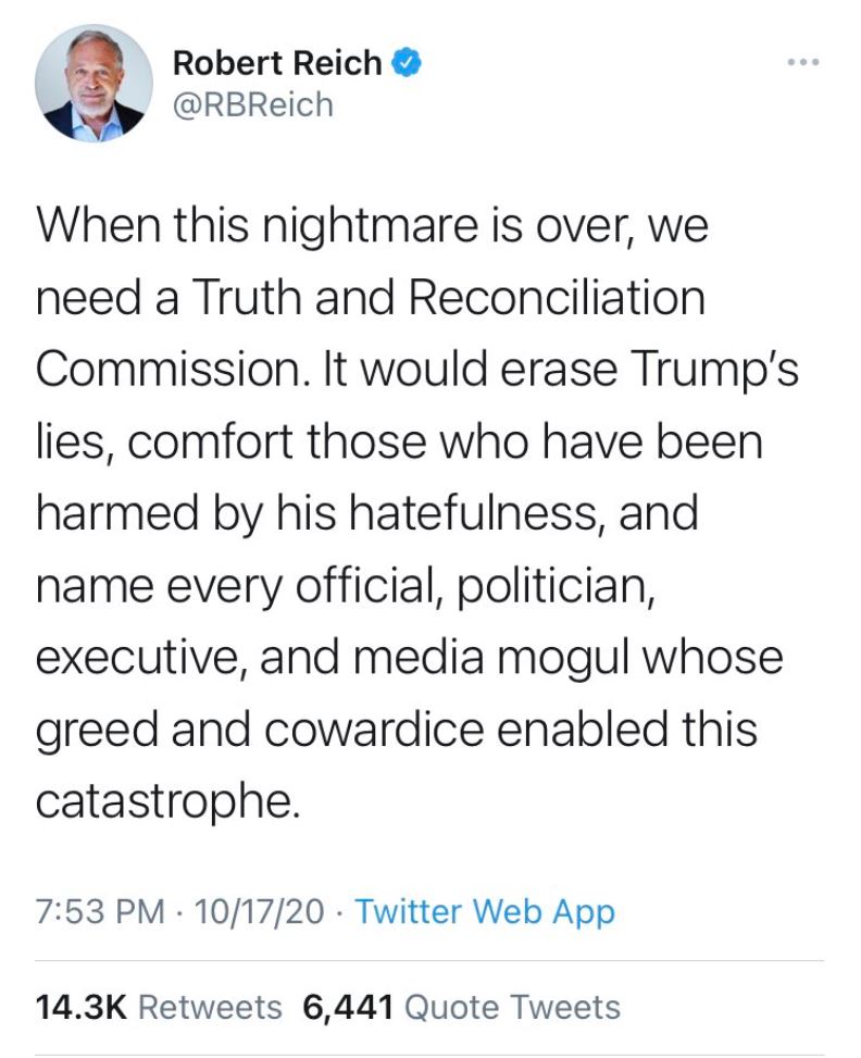 This is the situation Christians face today if the Democrats succeed in their coup attempt. A number of prominent Democrats has talked about making lists of political enemies whom they intend to target for reprisals once in office. In some cases, the lists include fellow Democrats who demonstrated insufficient enthusiasm for the revolution. In other cases, they are targeting Trump supporters. Prominent Democrat Robert B. Reich – he’s an economics professor at Berkeley and served in the Clinton administration as Secretary of Labor – has proposed a “truth and reconciliation commission” to “erase Trump’s lies” and to expose those who “enabled” them. This is dangerous, totalitarian and Bolshevik inspired language.