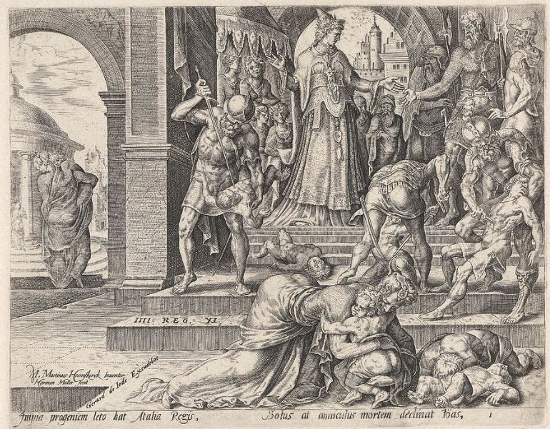 Queen Athaliah Orders The King’s Children to be Killed by Harmen Jansz Muller, Hadrianus Junius, and Gerard De Jode.