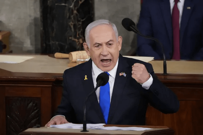 Benjamin Netanyahu, Prime Minister of Israel, addresses the U.S. Congress on July 24, 2024 in Washington. Josh Morgan, USA Today.