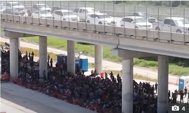 An estimated 1,000 migrants wait under the Anzalduas International Bridge near McAllen, TX, August 2021. This is what happens when Rome’s evil immigration theory is put into practice.